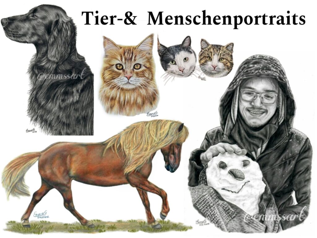 Nebenberuflich fertige ich auch handgezeichnete Auftragszeichnungen von Ihren Tieren an. Mit Blei- oder Buntstiften werden Ihre Liebsten in einer einzigartigen Weise für immer festgehalten. Für mehr Infos schauen Sie gerne auf meine Kunst Website: