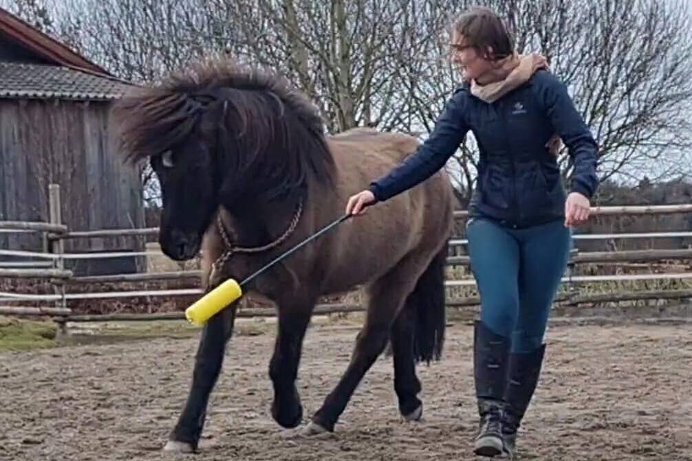 Anstatt das Pferd nur im Kreis zu longieren, baue ich in meine Longenarbeit viel Abwechslung ein. Es gibt einen häufigen Wechsel zwischen der Geraden und der Kreislinie, Hufschlagfiguren werden auch erarbeitet. Das Pferd lernt schonend sich auf der Kreislinie korrekt zu biegen und die Kommunikation auf Abstand wird verbessert. Die Longenarbeit wird auch mit Hindernissen, Matten und weiterem abwechslungsreich gestaltet.